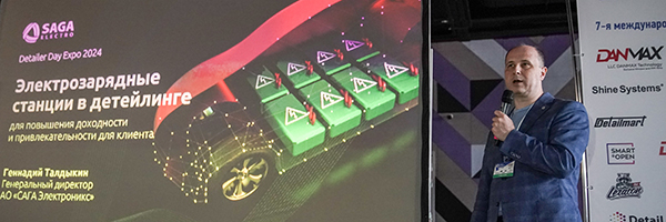 As part of the business program, SAGA Corporation's President, Gennady Taldykin, gave a speech. In his speech, he discussed directions of SAGA's activities, new charging stations for electric cars, and the prospects of the electric car market. He also shared his thoughts with business representatives on increasing profitability using the benefits of installing charging stations at their facilities.